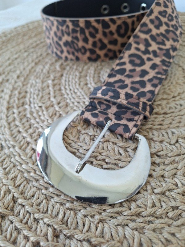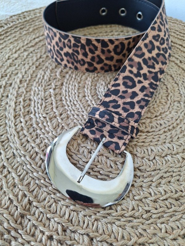 Cinto de pu estampado en print hebilla plateada 92 centímetros