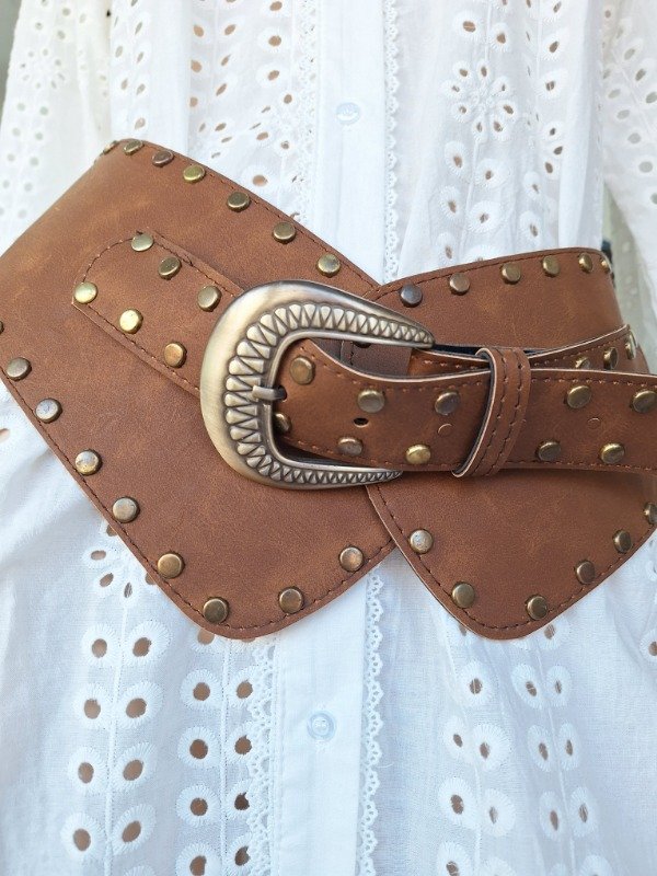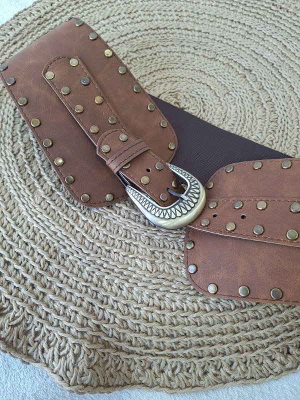 Faja de pu con tachas hebilla y elástico en la parte de atras