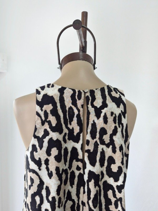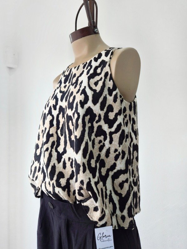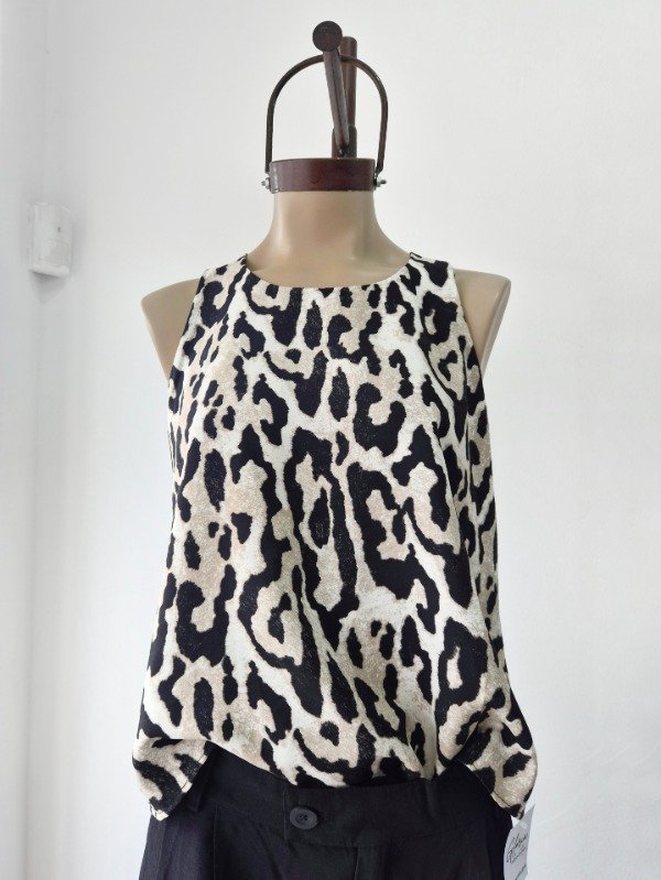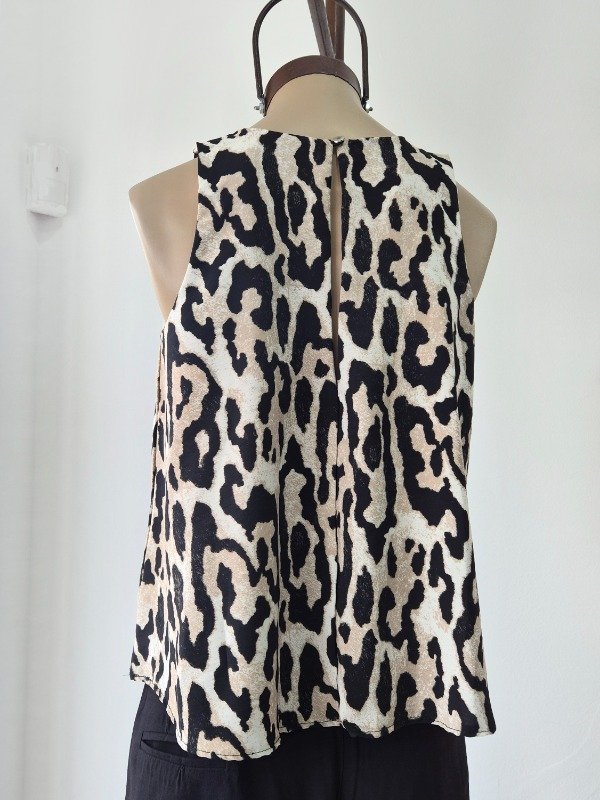 Musculosa de escote alto estampada print con botón y ojal en espalda.