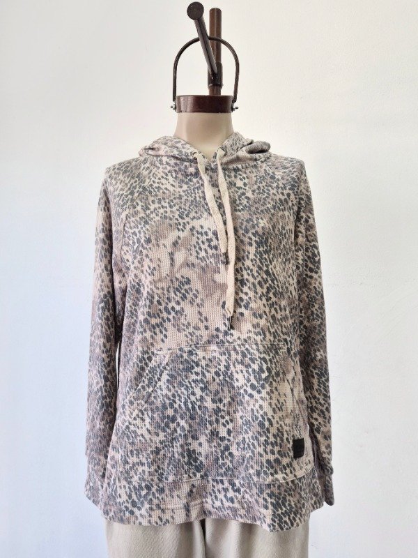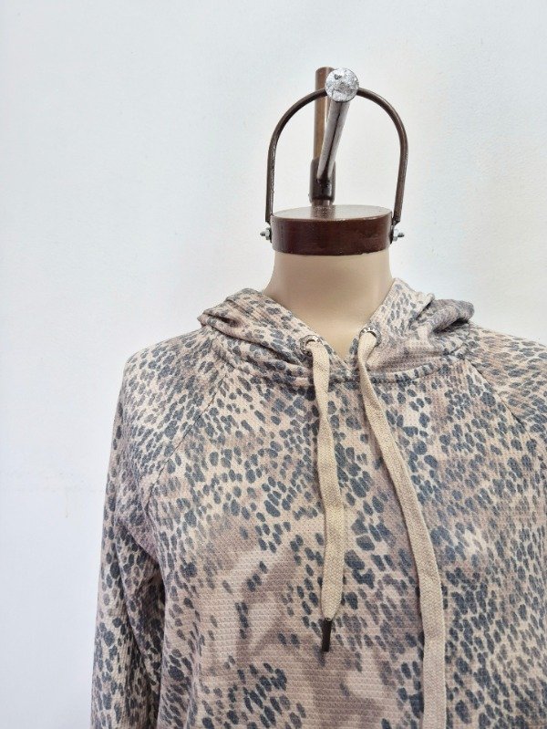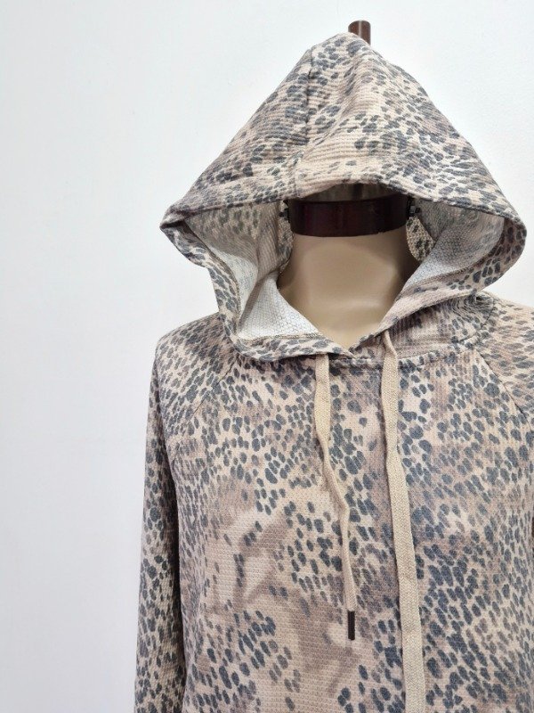 Buzo con tajitos laterales y capucha.