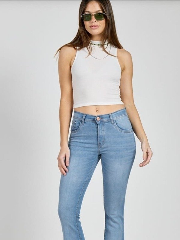 Confeccionado en denim elastizado, tiro medio.