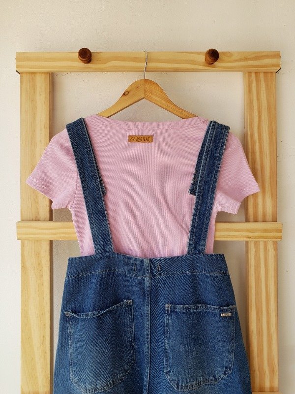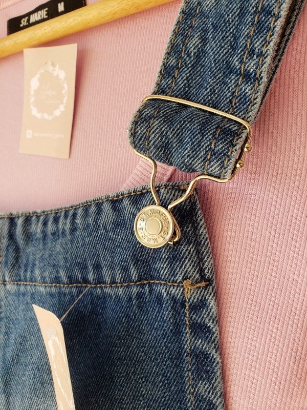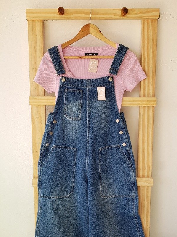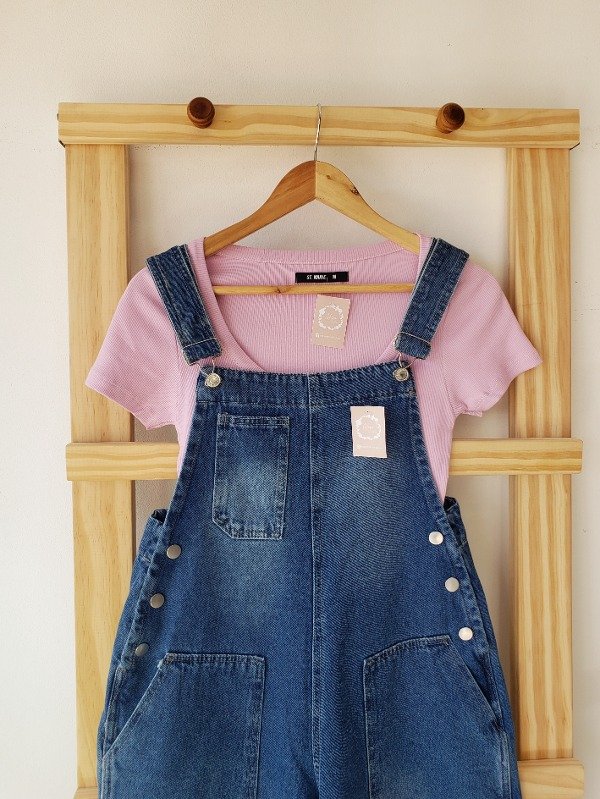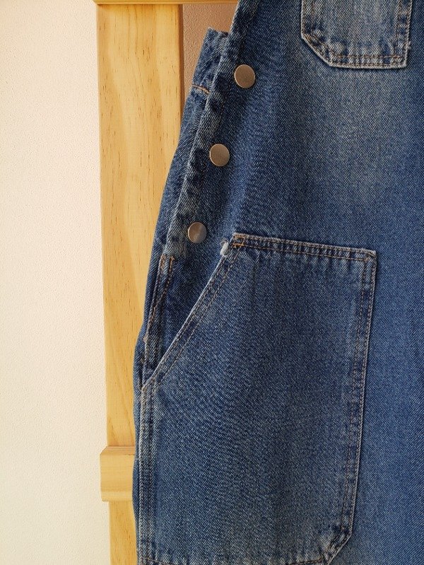 Jardinero de jean con botones y 5 bolsillos.