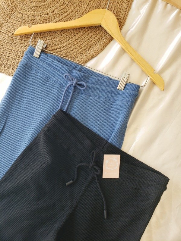 Pantalón estilo oxford con elástico y cordón en la cintura.