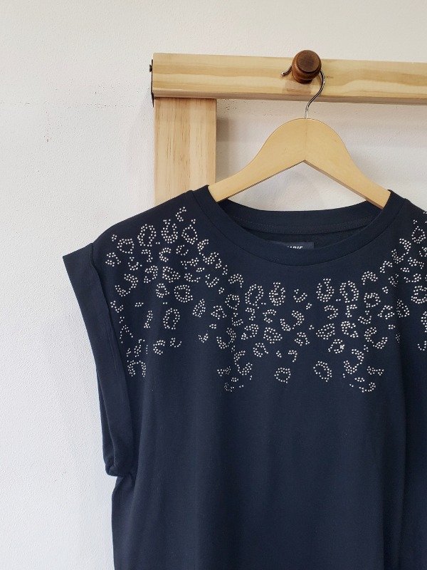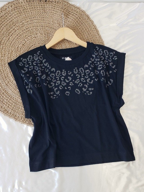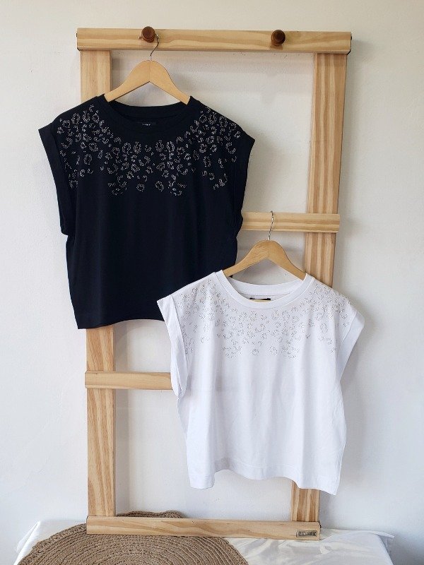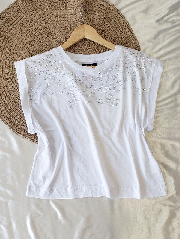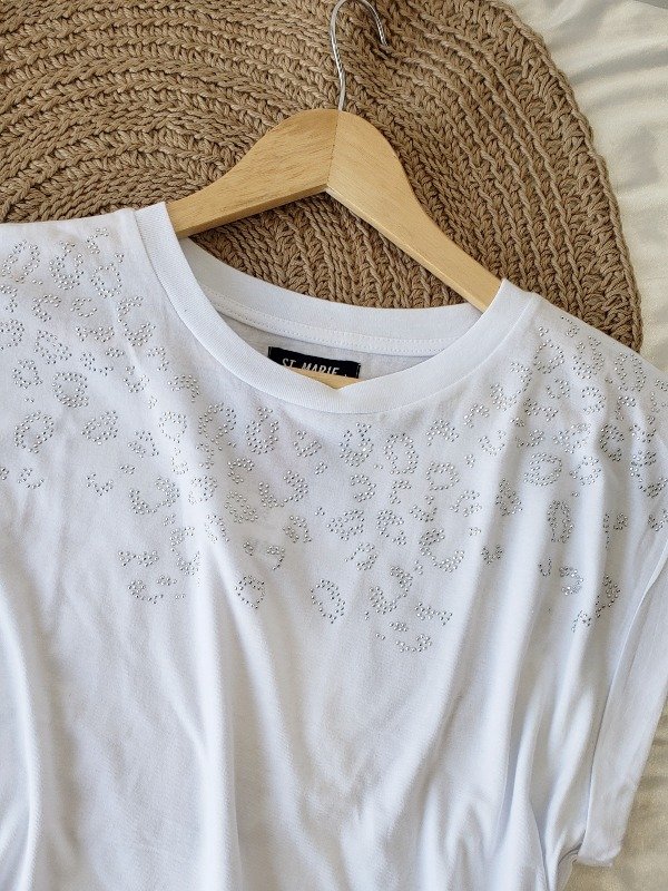 Remera manga corta con detalle estilo print de strass.