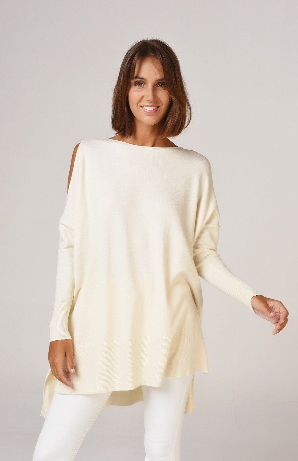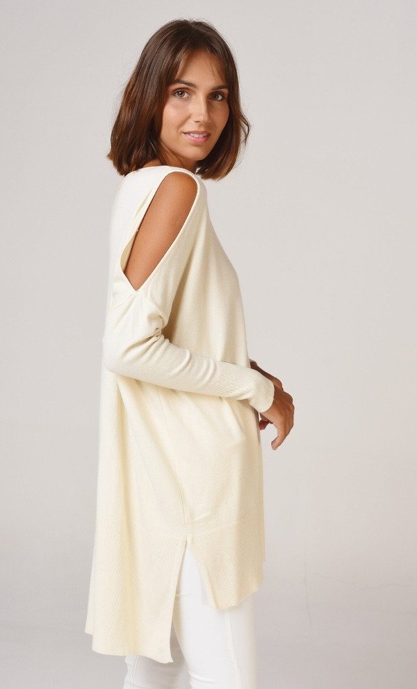 SWEATER DE BREMER OVERZISE CON UN HOMBRO DESCUBIERTO MAS LARGO EN LA ESPALDA